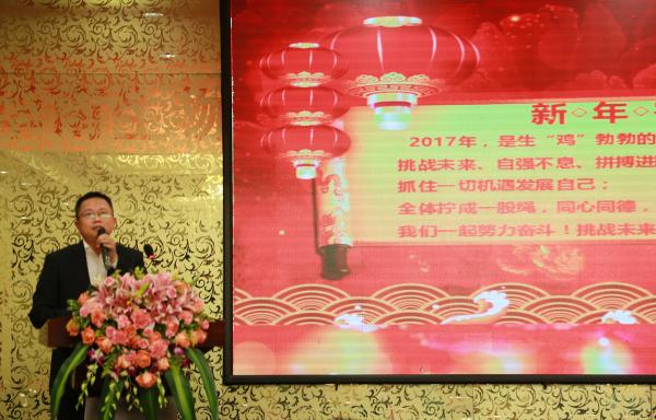 天津瑞普董事長、總裁李守軍先生首先祝賀了華南生物獲得的驕人成績,隨后就瑞普2017年的發展方向推及華南生物2017年的發展方向,大談華南生物2017年的轉型規劃,期望華南生物從具優勢的水禽疫苗轉向范圍更廣的家禽疫苗,逐步打造為現代高科技文化企業,并在觀念意識思維方面要有前瞻精神和創新意識,大力培養有魄力的團隊。這是他對華南生物今后發展的殷切希望,也是鞭策華南生物在新一年攀越新高的動力!