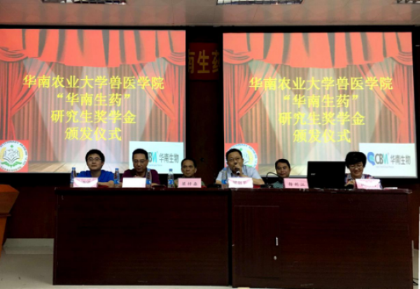 2017年5月24日上午,廣州市華南農大生物藥品有限公司(下稱“華南生物”)在廣州華南農業(yè)大學獸醫(yī)學院開展了2017年“華南生藥”研究生獎學金頒獎典禮,同時進行了“創(chuàng)新中的華南生物及就業(yè)指導”課程分享。