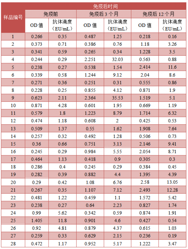 樣品采集后冷藏運送至華南農業大學獸醫微生物實驗室(CNAS認證狂犬病抗體檢測實驗室)以ELISA方法檢測免疫犬的狂犬病抗體。所用試劑為SYNBIOTICS生產的ELISA試劑盒。