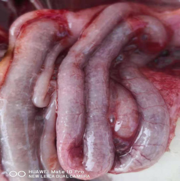 摘要:2019年3月初,江蘇省某27日齡、5000只規模的泰州鵝品種商品代養殖場鵝群發病:每天死亡20多只,有少部分鵝精神不振、縮脖,病鵝行動不變,表現腿病,另外拉白色稀便。解剖死鵝可見:肝臟、脾臟、腸道、密布針尖大的白色壞死點,腎臟腫大也散在白色針尖大的壞死點。個別鵝有痛風病癥和/或大腸桿菌病變。病鵝用抗生素治療無效,初步診斷為呼腸孤病毒感染,同時采集內臟組織送實驗室進行了星狀病毒、鴨瘟病毒、呼腸孤病毒、新呼腸孤病毒的RT-PCR檢測,結果顯示新呼腸孤病毒可以明顯擴增出特異性條帶,其余均為陰性,最終確診為新呼腸孤病毒感染。